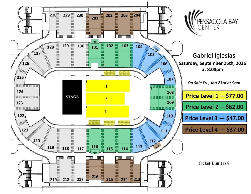 Following the success of his latest Netflix special, Gabriel Iglesias: Legend of Fluffy, Iglesias announced he will bring his new THE 1976 TOUR: A FLUFFY CELEBRATION to the Pensacola Bay Center in Pensacola, FL on September 26, 2026!