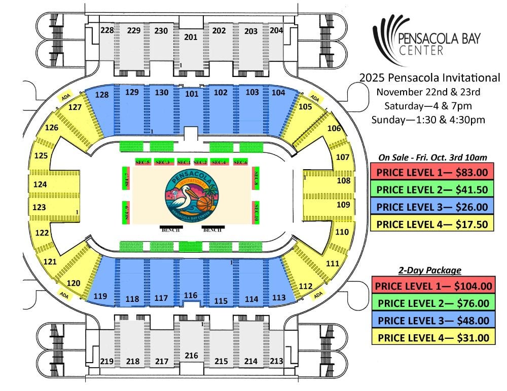 Get ready, Pensacola - college hoops are taking over the Pensacola Bay Center! The inaugural Pensacola Invitational brings four powerhouse programs together for a high-energy, two-day, winner-takes-all championship format tournament.